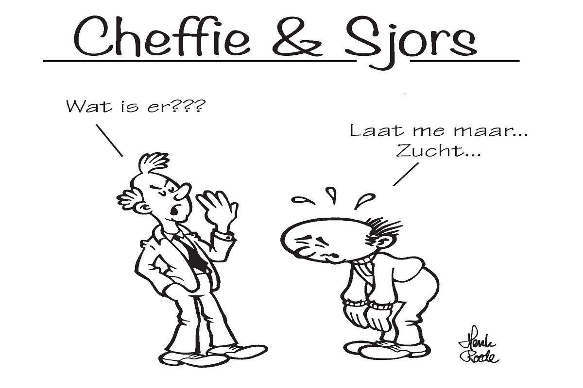 Cheffie probeert weleens schoorvoetend een gesprekje met Sjors aan te gaan, maar zonder echt resultaat. Sjors weet het ook niet zo goed en de (verloren) tijd schrijdt verder. Cheffie zoekt gemakkelijker contact met de collega met een gebroken been.